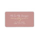 Sencillo, mínimo, moderno guión de caligrafía rosa polvoriento etiqueta de dirección de retorno de boda con corazón de cuerda dorada.