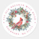 Añade un toque especial a tu invierno o sobres de Navidades. Diseñado para coordinar con la corona de Navidades Elegantes y la colección de cardenales. Un cardenal rojo se esconde en una guirnalda tradicional de pino, decorada con bayas, piñones y flores. Su dirección está escrita encima y debajo del festividad del ramo floral.