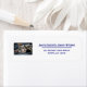 Elegante y moderna etiqueta personalizada de la dirección de retorno DIY para una persona (también se puede personalizar para una familia), con un suplente (con una máscara con esquinas redondeadas) para una foto de su gato mascota (o uno de ustedes y su amigo futbolín; o en su lugar, puede subir una foto de un perro), y con un guión de impresión elegante y a la moda para su nombre y apellido o el nombre de su familia más todos los mayúsculas para su dirección ... Esta versión tiene la escritura en azul oscuro.