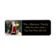 Hermosos Navidades regresan a la etiqueta de dirección con Santa Claus sosteniendo una linterna y su personal en la mano izquierda y cargando un saco lleno de regalos sobre su hombro derecho sobre fondo negro. Haga clic en el botón "Personalizar" para agregar su propio nombre, cambie el estilo de fuente, el color del tipo de letra, el tamaño del tipo de letra y el color de fondo para adaptarlo a sus necesidades.