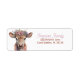 Envíe correo con encanto y estilo campestre usando esta etiqueta de dirección de retorno de la "vaca sagrada" acuarela. Con una vaca dulce en una corona floral con escritura de estilo occidental, es ideal para cumpleaños, duchas de bebé o celebraciones rústicas con temática agrícola. Personalice el nombre y la dirección de su familia con un toque muy bien coordinado.