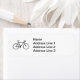 Este diseño de etiqueta de dirección incluye una silueta de una bicicleta.