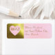Elegante diseño en tonos pastel y colores dorados. Las etiquetas de dirección de retorno del boda que presentan un marco de forma de corazón dorado, funcionan como retrato si se desea insertando la imagen bajo la ventana del corazón. Puede personalizar este diseño con sus iniciales y fecha de boda. Este diseño tiene diferentes colores, rosa, rosa pálido, verde, azul cielo, naranja, blanco y negro. Para ver toda la colección, visite mi tienda de Zazzle Wedtionary en zazzle.com/wedtionary y vea dentro de la carpeta Colección de Rosas Vintage y Colección de corazones dorados