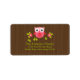 Vestir sus invitaciones a la ducha de bebé, anuncios de nacimiento de bebé o tarjetas de agradecimiento de bebé con nuestras etiquetas de la dirección de retorno de búho dulce! Esta etiqueta de dirección de retorno incluye una adorable lechuza rosa sentada en una rama de árbol verde lima con flores sobre un fondo marrón de moda. El toque final perfecto para su Baby Shower Invitaciones o invitaciones de cumpleaños. En nuestra tienda de www.celebrateitinvites.com se ofrecen invitaciones coincidentes para duchas de bebé y fiestas de cumpleaños. © Petit Tatti