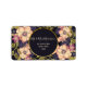 Etiqueta de dirección de regreso negra elegante y chic con flores doradas y rosadas rústicas. ¡La elección perfecta para bodas románticas!
