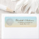 Hermoso diseño de la etiqueta de dirección de las conchas marinas, con un degradado de arena y azul playa.