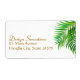 Etiqueta de dirección tropical, hoja de palma, tema de playa, etiqueta de invitaciones de boda