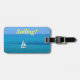 Modifique esta etiqueta para requisitos particulares con su nombre y número de teléfono en la parte posterior, para ayudar en el caso de un bolso perdido. Velas blancas contra absolutamente un mar de la turquesa. El salir en el agua en un velero debajo de un cielo azul despejado es una receta náutica por un día perfecto.