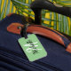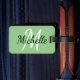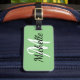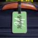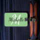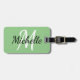 Empaquete la etiqueta con un nombre inicial y del fondo verde claro y del monograma de encargo blanco primero