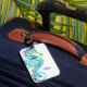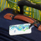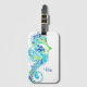 Esta etiqueta de equipaje personalizado se muestra en blanco con un diseño de impresión de caballito de mar azul. Personalizar esta etiqueta y cambia el nombre del ejemplo al suyo con esta plantilla.
