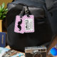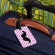 FUNNY MUSTACHE LUGGGAGE TAG. MUSTACHE NEGRO CON PATRÓN DE CADENAS ROSAS Y BLANCAS. "TE DEVOLVERÉ A DEVOLVER MI EQUIPAJE". MOVIEFUN© Para obtener otros colores de bigote o de rayas de fondo, póngase en contacto con la tienda.