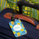 Etiqueta del equipaje del personalizado mostrada con una impresión hawaiana muy tropical con texto Aloha. Personalizar esta etiqueta o compra como está.
