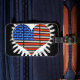 La bandera estadounidense con luces de neón envuelta en un corazón. Celebren América con este audaz y rústico diseño de emblema. Patriótico, divertido, genial.