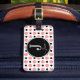 Diseño rosa, negro y plateado con nombre personalizado y detalles de contacto en el reverso.