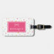 Etiqueta de equipaje colorido y moderno con puntos de polka rosa caliente, azul y amarillo oscuro con etiqueta de borde de vieira rosa caliente. Esta etiqueta personalizada será perfecta como regalo de cumpleaños y de vacaciones.