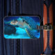 Para los amantes de las tortugas de mar, esta etiqueta para el equipaje es perfecta con la imagen de una tortuga marina que explora el mar.