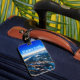 Un parque de invierno, etiqueta de equipaje de Colorado que destaca la estación de esquí y la ciudad.