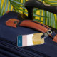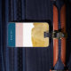 Elegante etiqueta de equipaje con colores pastel, detalles falsos de oro, un monograma personalizado en la parte inferior y su información personal en la parte posterior.