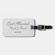 La etiqueta de equipaje del personalizado se muestra en un color gris claro con texto de sólo casado. Personalizar esta etiqueta y cambia nombres y fecha a la tuya.