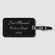 La etiqueta del equipaje del personalizado se muestra en blanco y negro con texto de Just Married. Personalice esta etiqueta y cambie los nombres y la fecha con esta plantilla. Incluso se pueden cambiar los colores.
