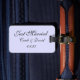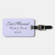 La etiqueta de equipaje del personalizado se muestra en lavanda con texto de recién casado. Personalizar esta etiqueta y cambia nombres y fecha a la tuya, también pon tu foto en la parte posterior de la etiqueta. Incluso se pueden cambiar los colores.