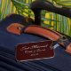 Etiqueta del equipaje del personalizado mostrada en marrón/aqua con texto de Just Married. Personalizar esta etiqueta y cambia nombres y fecha a la tuya. Incluso se pueden cambiar los colores.
