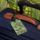 Esta impresionante etiqueta de equipaje muestra una detallada fotografía de un saltamontes verde bellamente camuflado contra la cuchilla de hierba en la que está sentado. La fotografía fue tomada usando macrofotografía para obtener un resultado asombrosamente detallado. Hay texto de personalizable en la parte posterior que le permite personalizar su etiqueta con su nombre y cualquier otra información de su elección.