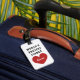 El Okayest Fiancé es la etiqueta de equipajes divertidos del mundo para futuros novio o novio. Impresión de doble cara con nombre y dirección personalizados. Diseño humorístico con corazón rojo. Etiquetas de equipaje personalizadas para hombres comprometidos, pareja boda, luna de miel, recién casados, futuros esposos, etc. También divertido para amigos y familia. Personaliza con tu propio nombre y dirección. Etiqueta de equipajes de moda para bolsas de viaje y maletas.