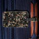 Etiqueta de equipaje floral monograma. Esta etiqueta de equipaje de flores silvestres elegante y con estilo presenta hermosas flores silvestres pintadas a mano en acuarela dispuestas en un patrón encantador sobre un fondo negro. Encuentre artículos coincidentes en la Colección de Boda de Flores Silvestres Boho Negros.