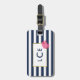 Esta etiqueta para el equipaje tiene un fondo de rayas azul marino y blanco, un borde dorado falso y un peón rosa bonito con acuarelas suaves. Coordina con nuestros accesorios de oficina, productos de papel y accesorios de la Marina Stripe & Pink Peony. Personalizar el anverso con un monograma, nombre o texto de su elección y añada los datos de contacto al reverso.
