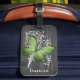 Etiquetar su equipaje cuando viaje con una etiqueta de equipaje personalizada de mariposa rústica verde. El diseño de la etiqueta para el equipaje incluye una mariposa contra una vina blanca de hojas y fondo de madera gris oscura. También hay artículos adicionales disponibles con este diseño. Póngase en contacto conmigo directamente para obtener ayuda sobre la personalización.