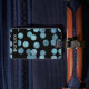 Presenta un diseño de puntos de Relieve metalizado turquesa en un fondo negro. Personalice con un nombre en la parte delantera y un nombre y dirección en la parte posterior.