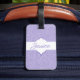 Cree una etiqueta de equipaje única con esta etiqueta de equipaje personalizada de Purpurina púrpura. El diseño de las etiquetas de equipaje incluye un fondo purpurina morado y banner blanco que puede personalizar con su nombre. También hay artículos de regalo adicionales disponibles con este diseño. Por favor, contáctame directamente si necesitas ayuda con la personalización.