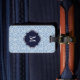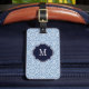 Etiqueta de equipajes de monograma azul y blanco D