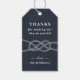 Un nudo atrevido y dibujado a mano es la pieza central de esta etiqueta de favor de boda con temática náutica.