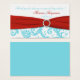 Esta etiqueta azul y blanco de damasco de flores de color azul acuático tiene una cinta roja IMPRESIONADA y una hebilla de joyas IMPRESA que coincide con la invitación a la boda que se muestra a continuación. **NOTA, si cambia el tamaño de la tarjeta, o si cambia las fuentes, o el tamaño del tipo de letra, parte del diseño y/o el texto puede ser cortado. Todo se imprimirá como lo ves en tu monitor. No voy a ver los cambios que hagas, y Zazzle NO corregirá nada (tipografía, desalineación, etc.). El texto es todo personalizable. Si necesita ayuda con este producto, por favor envíeme un correo electrónico ANTES de realizar su pedido. Si necesita cualquier otro elemento coincidente, envíe su solicitud a niteowlstudio@gmail.com