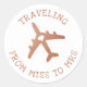 Etiquetas adhesivas de regalo para despedida de soltera de cobre rosa dorado de "Miss a Mrs" para una novia de destino o tema de viaje. El avión de falso foil con corazón en el centro es nuestro diseño exclusivo y puedes encontrar más artículos coordinados en nuestra tienda de diseñadores de Zazzle. • • • • • • • Haz clic en PERSONALIZAR MÁS para cambiar el color de fondo de la etiqueta, elegir un nuevo color de texto o fuente, o editar el diseño para crear una etiqueta personalizada para tu celebración. • • • • • • •