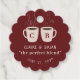 Un par de tazas ilustradas humeantes de rico café oscuro decoran esta encantadora etiqueta de favor de café, chocolate caliente y té para ducha o boda. Personalice todo el texto, incluyendo las letras de monograma de él y ella en las tazas para una etiqueta de favor verdaderamente única.