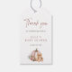 Celebra a la futura mamá con esta etiqueta de agradecimiento para baby shower de otoño vintage inspirada en rosa polvorienta, que presenta una ilustración de un adorable osito de peluche sentado junto a una calabaza con un ramo floral.