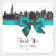 NYC Skyline Wide Angle Etched Look 01 Cinta Verde azulada - Invitation Suite - Favor Tags / Pegatinas =============== Elegante, moda y elegantes invitaciones y accesorios de personalizable con un icónico gran angular de color negro y blanco grabado con vistas al East River de la ciudad de Nueva York, con ESB, Torre BofA, Edificio Chrysler y muchos otros. También tiene una verde azulada apariencia de satén. Este producto forma parte de un conjunto de diseños de correspondencia que son de fácil personalizable para muchas ocasiones y eventos. Si necesita tarjetas RSVP separadas que coincidan, notas de agradecimiento, sellos, imanes, etiquetas de favor, tarjetas de acompañamiento, tarjetas de plaza, etiquetas de vino, menús, programas de eventos u otros accesorios, por favor revise nuestros otros listados. Todos los derechos reservados