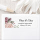 Estas elegantes etiquetas se caracterizan por sus grandes flores acuáticas en tonos rosas sobre un fondo blanco. Forma parte de una suite boda que se puede personalizar por completo.