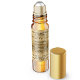 Una etiqueta para frascos de perfume con rodillo con un diseño de oro falso y brillo.