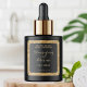 Una etiqueta de producto para cosméticos, y productos de baño y cuidado corporal con un falso borde purpurina de oro y un área negra con espacio para la información de su empresa.