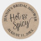 Esta simple etiqueta adhesiva para frasco de salsa de despedida de soltera con estilo rústico presenta las palabras "Caliente y picante" en letra manuscrita. Agregue su información en el formulario de plantilla. Cambie la fuente y el diseño utilizando la función Personalizar aún más.