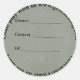 Una pequeña etiqueta verde ideal para las cajas pequeñas. Rellene su información y colóquela en su caché. Espacio para propietario, información de contacto y número GC.