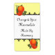 Etiqueta de enlatado o jabón personalizado con dos naranjas maduros en una rama con flores blancas pequeñas que florecen contra hojas verdes en un fondo amarillo. Con espacio para el texto de su personalizado en letras góticas. Haga clic en Personalizar para cambiar los tipos de letra, el tamaño de la etiqueta y mucho más, e incluso guardar el diseño para más adelante.
