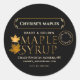 Etiqueta de jarabe de arce negro con hoja y fecha