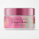 Etiqueta de frasco de cosméticos con un falso Relieve metalizado de oro y fondo de mármol rosa. Esta etiqueta mide 1 pulgada por 7,25 pulgadas (25 mm por 184 mm) y es adecuada para vasijas con un diámetro de 59 mm o más.