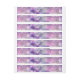 Etiqueta de un frasco de baño y cuidado corporal con un fondo de flores rosadas y violetas y texto negro.