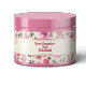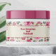 Una etiqueta impermeable para productos cosméticos y/o de jabón con un fondo de color marrón y rosas rosas rosas de fondo. Personalizar con la información de su negocio y de producto.